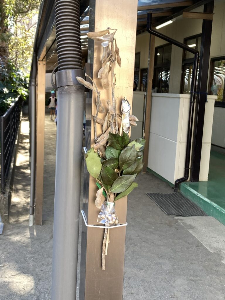 事前に鬼のお面や豆入れをみんな自分達で作りました。